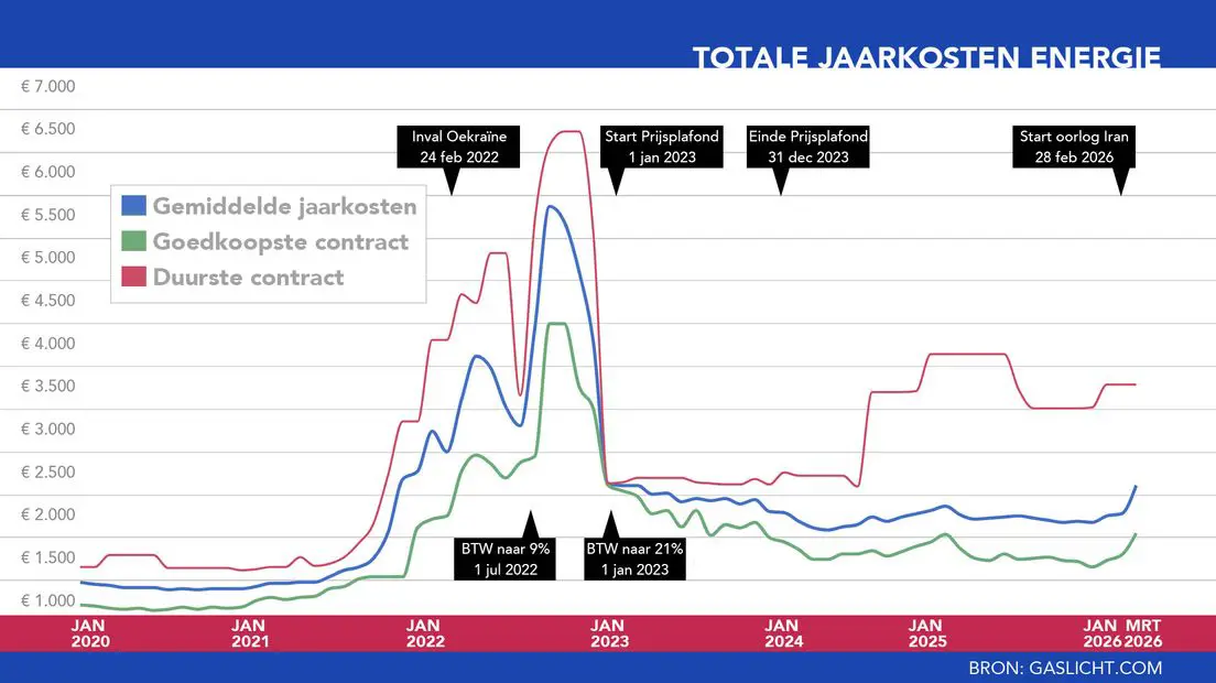 'Als je nu een variabel contract hebt, wees erop voorbereid dat de prijzen omhoog gaan', zegt Ben Woldring, oprichter van gaslicht.com. 'In de energieprijzen zit een vertraging van een tot zes maanden', legt hij uit.
