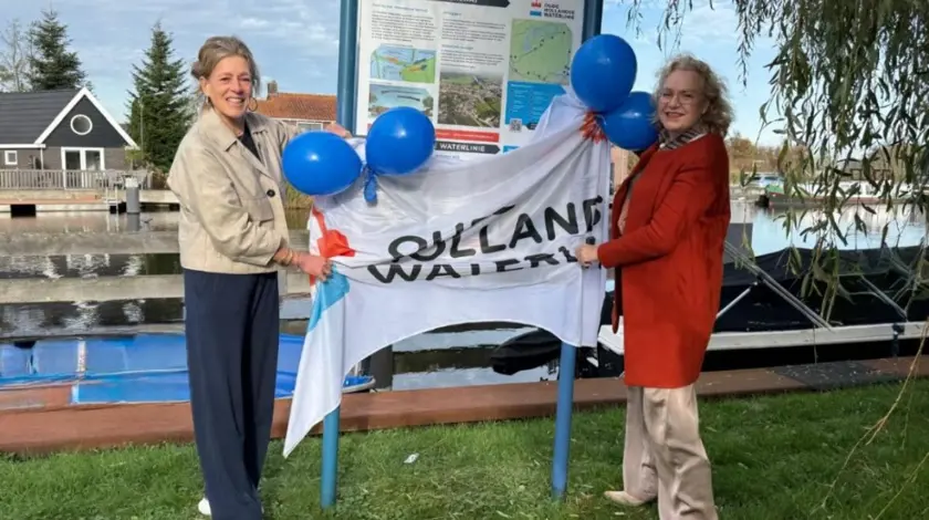 WOERDENSE VERLAAT - Wethouder Antoinette Ingwersen heeft het vernieuwde informatiebord over de Oude Hollandse Waterlinie bij Woerdense Verlaat officieel onthuld. Dat deed zij samen met Anastasia van der Lugt, directeur van Stichting Oude Hollandse Waterlinie.